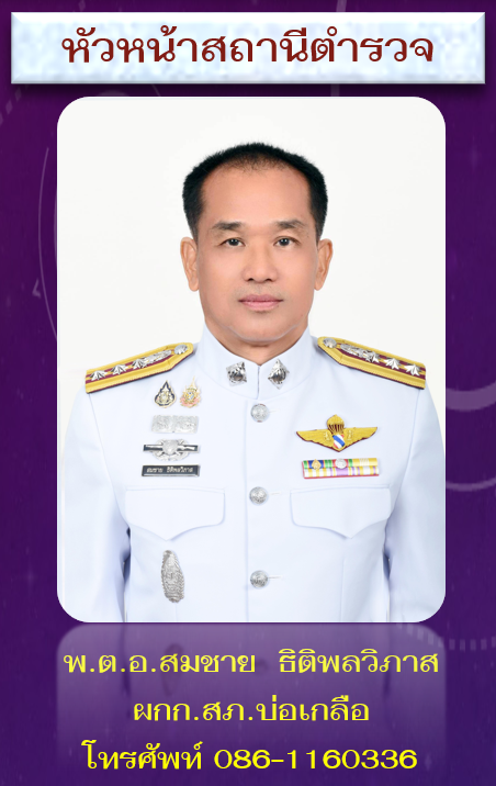 วันที่ 23 ตุลาคม 2568 เวลา 08.30 น. พันตำรวจเอก สมชาย สุขทรัพย์ ผู้กำกับการสถานีตำรวจภูธรบ่อเกลือ