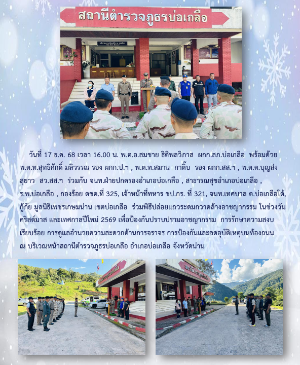 วันที่ 6 มกราคม 2569 เวลา 09.00 น. โดยการอำนวยการของ พ.ต.อ.สมชาย ธิติพลวิภาส ผกก.สภ.บ่อเกลือ , พ.ต.