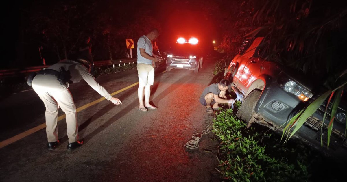 นำรถที่ตกข้างทางออกจากจุดเกิดเหตุ