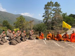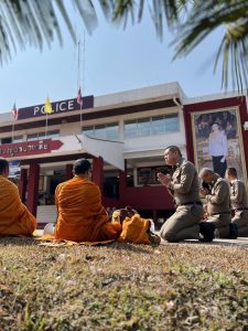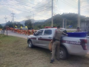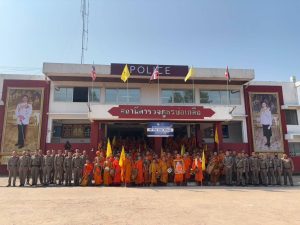 วันที่ 7 กุมภาพันธ์ 2568 เวลา 09.30 น. พ.ต.อ.จักรียุทธ โชติวชิระพงศ์ ผกก.สภ.บ่อเกลือ พร้อมด้วย ข้าราชการตำรวจ สภ.บ่อเกลือ ทุกนาย ร่วมกันทำบุญถวายน้ำดื่ม และน้อมถวายปัจจัยสบทบทุนเป็นค่าภัตตาหารและน้ำปานะ แด่คณะพระสงฆ์และสามเณร ที่ออกเดินธุดงค์ ในโครงการธรรมะห่มดอย พระสงฆ์จำนวน 120 รูป ในโอกาสที่ทางคณะพระธุดงค์เดินทางจาริกขึ้นมาสวดมนต์แผ่เมตตาที่ ด้านหน้า สภ.บ่อเกลือ เพื่อความเป็นสิริมงคล ให้กับข้าราชการตำรวจ และอุทิศผลบุญให้กับพระภูมิเจ้าที่ สัมภเวสี และญาติผู้ล่วงลับ หลังจากเสร็จสิ้น คณะสงฆ์ได้เดินทางจาริกต่อไป เพื่อนำพระบรมสารีริกธาตุและดินจากสังเวชนียสถาน ประเทศอินเดีย ไปบรรจุในพระพุทธเจดีย์ศรีภูฟ้า ต.ภูฟ้า อ.บ่อเกลือ จ.น่าน โดยทาง สายตรวจรถยนต์ สภ.บ่อเกลือ ได้ติดตามคณะเพื่อบริการถวายน้ำดื่มตลอดเส้นทางจนถึงที่หมายของวันนี้