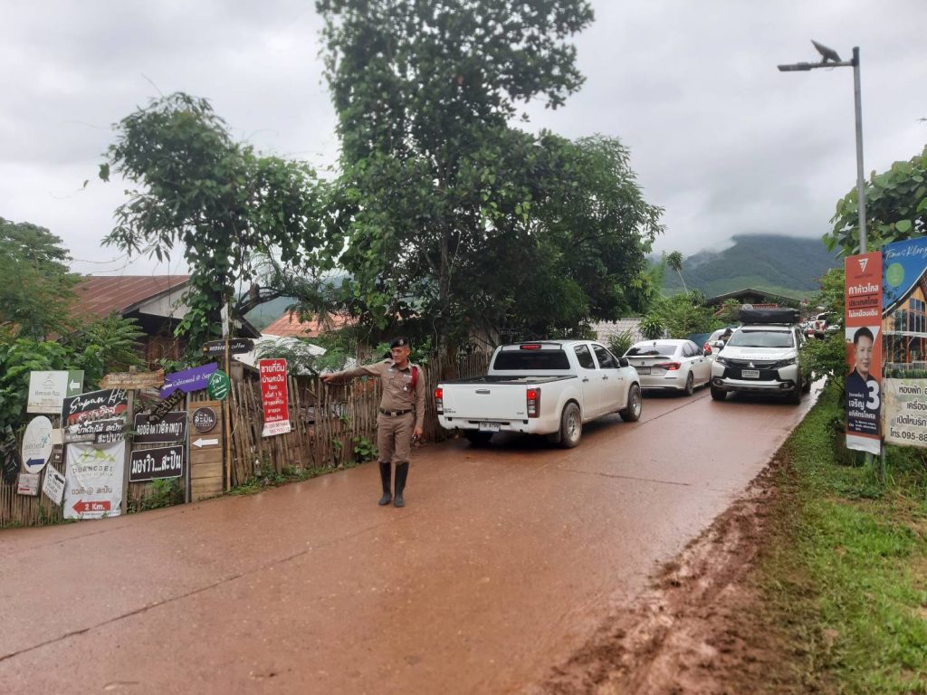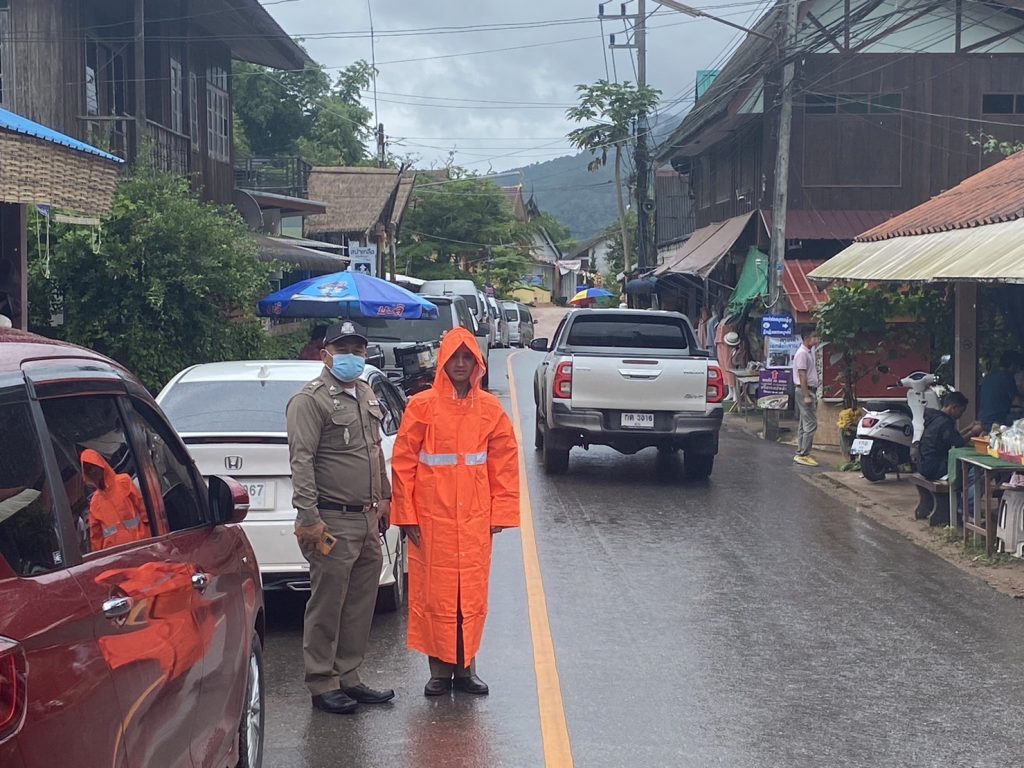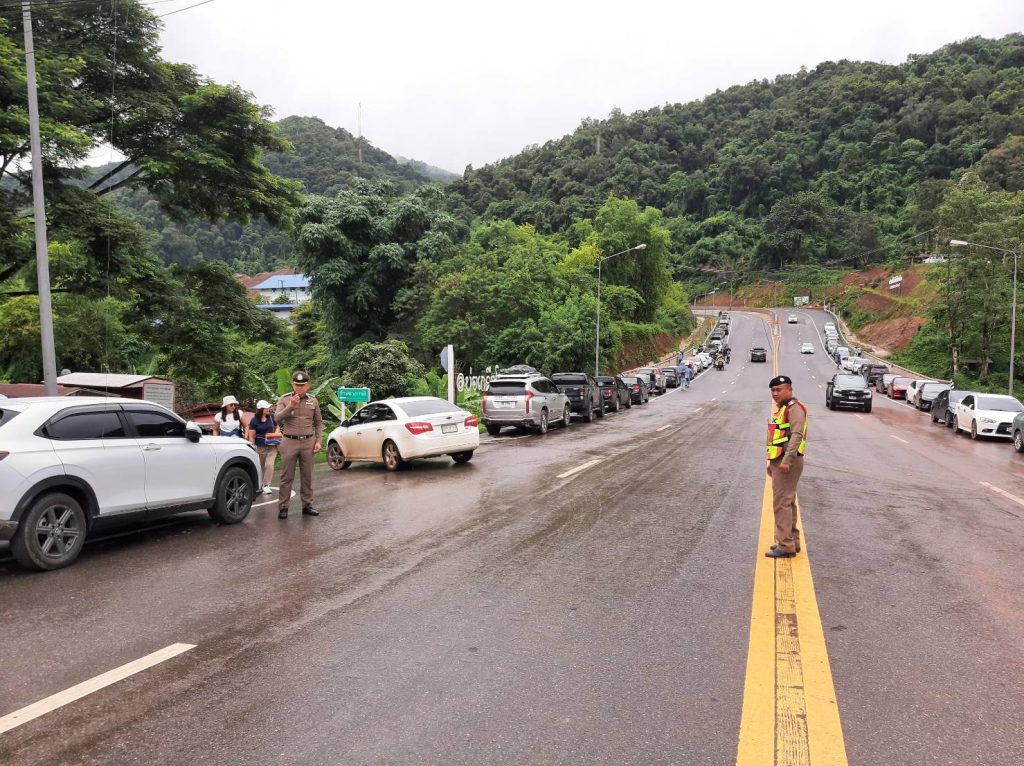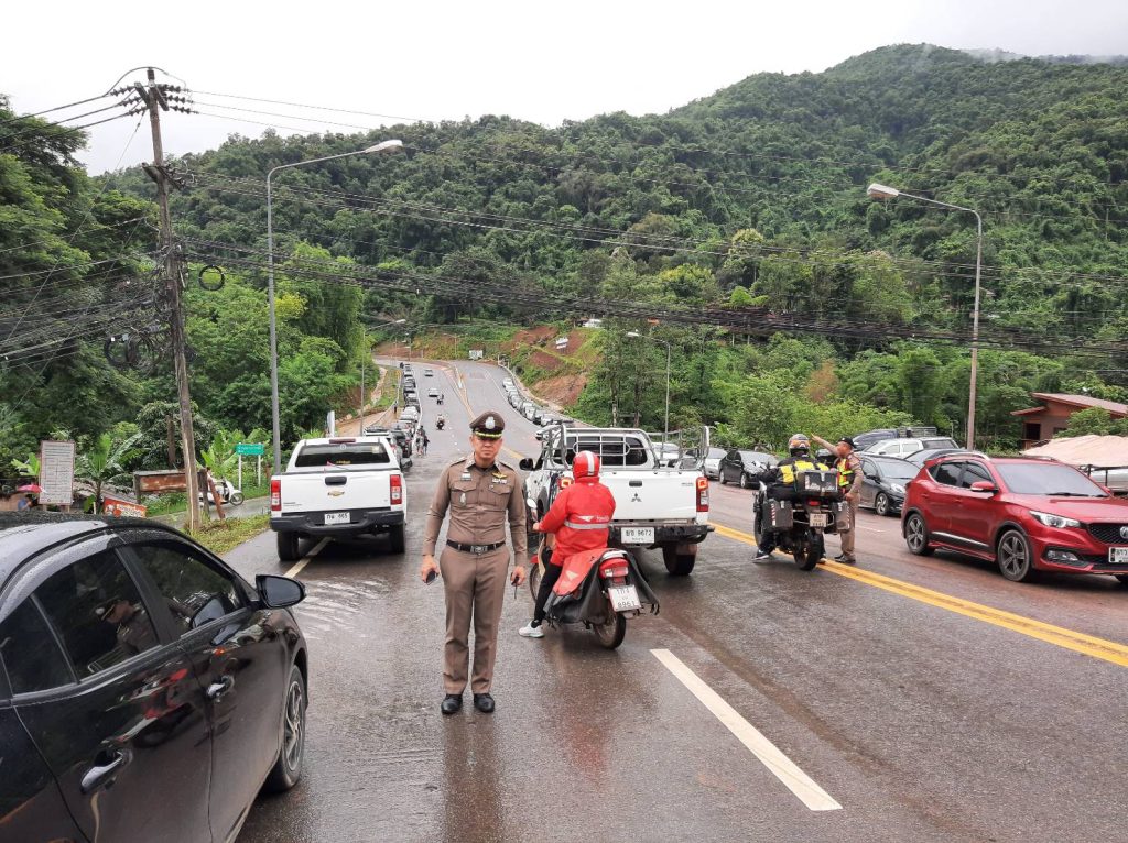 ที่ปฏิบัติหน้าที่อำนวยความสะดวกการจราจรให้กับนักท่องเที่ยว ช่วงวันหยุดยาว