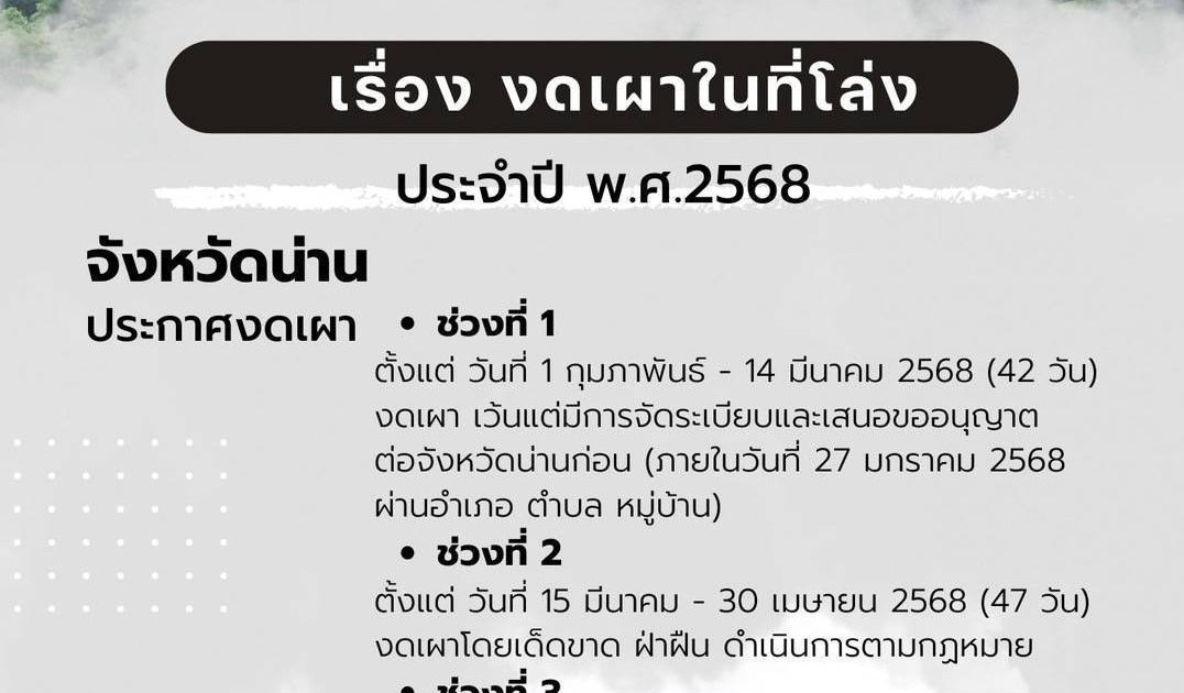 ประชาสัมพันธ์งดเผาในที่โล่งแจ้ง 24 มกราคม 2568 โดย admin / ข่าวประชาสัมพันธ์ FacebookFacebookXXLINELine