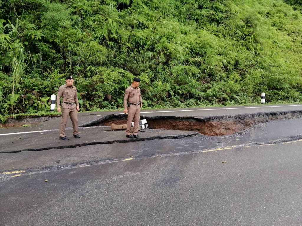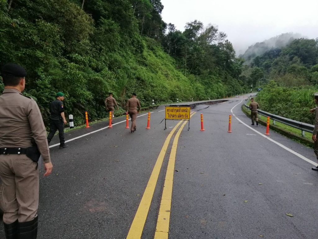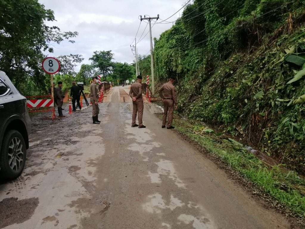 2.บริเวณสะพานแบริ่ง(สะพานชั่วคราว) จุดดินสไลด์ถนนขาดก่อนถึงบ้านห้วยโป่ง
