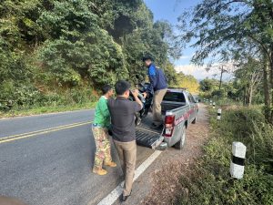 วันที่ 5 ธันวาคม 2567 เวลา 14.14 น. โดยการอำนวยการของ พ.ต.อ.จักรียุทธ โชติวชิระพงศ์ ผกก.สภ.บ่อเกลือ สั่งการให้ ร.ต.ท.วัฒนพล บ้านสระ รอง สว.(สอบสวน) สภ.บ่อเกลือ พนักงานสอบสวน และผู้ช่วยพนักงานสอบสวน ไปตรวจสอบกรณีรับแจ้งเหตุจากศูนย์วิทยุ 191 ภ.จว.น่าน ว่ามีเหตุ ว.40 รถจักรยานยนต์ลงเอง บริเวณถนน 1081 สันติสุข-บ่อเกลือ บ้านน้ำหมาว จากการสอบสวนเบื้องต้น ได้ความว่าผู้บาดเจ็บ เป็นนักท่องเที่ยวจาก จว.ชลบุรี ซึ่งได้เช่ารถจักรยานยนต์ เดินทางมาจากสนามบินน่านนคร มาตามถนนหมายเลข 1081 มุ่งหน้าไปอำเภอบ่อเกลือ เพื่อจะไปพักที่ รีสอร์ทบ้านก่อก๋วง ต.บ่อเกลือใต้ อ.บ่อเกลือ เมื่อขับขี่รถจักรยายนต์มาถึงบริเวณที่เกิดเหตุ มีรถกระบะสีขาว ขับสวนทางข้ามเลนมาทางฝั่งของตน ทำให้ตนต้องบังคับรถจักรยานยนต์หลบ ทำให้รถเสียหลักล้มลง ตนได้รับบาดเจ็บ รถจักรยายนต์เสียหายเล็กน้อย และมีรถนักท่องเที่ยวที่ขับตามมาได้จอดแวะช่วยเหลือ และแจ้ง 191 และ 1669 นำตัวส่งโรงพยาบาลบ่อเกลือ พนักงานสอบสวน จึงได้ไปตรวจดูที่เกิดเหตุและนำรถจักรยานยนต์ ที่อยู่ในที่เกิดเหตุ ส่งคืนผู้ได้รับบาดเจ็บ และดำเนินการในส่วนที่เกี่ยวข้องต่อไป
