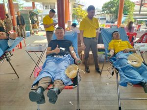 วันที่ 11 กุมภาพันธ์ 2568 เวลา 09.00 น. พ.ต.อ.จักรียุทธ โชติวชิระพงศ์ ผกก.สภ.บ่อเกลือ พร้อมด้วย ร.ต.อ.ภูวิศ ฑีฆาวงค์ รอง สว.อก.สภ.บ่อเกลือ และข้าราชการตำรวจ สภ.บ่อเกลือ จำนวน 2 นาย เข้าร่วมกิจกรรมจิตอาสาบริจาคโลหิต ณ ตำรวจภูธรจังหวัดน่าน