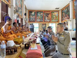 วันที่ 8 กุมภาพันธ์ 2568 เวลา 10.00 น. พ.ต.อ.จักรียุทธ โชติวชิระพงศ์ ผกก.สภ.บ่อเกลือ พร้อมด้วย พ.ต.ท.นพดล วัชรกิจโสภณ สวป.สภ.บ่อเกลือ, ร.ต.ต.ชายแดน กติยา รอง.สว.(ป.) สภ.บ่อเกลือ, สายตรวจรถยนต์ และจราจร สภ.บ่อเกลือ ร่วมงานทำบุญถวายหลังคาพระอุโบสถ วัดบ้านห่างทางหลวง ต.ภูฟ้า อ.บ่อเกลือ จว.น่าน โดยมี พระครูสุทินนันทธรรม เจ้าคณะอำเภอบ่อเกลือ เป็นประธานฝ่ายสงฆ์
