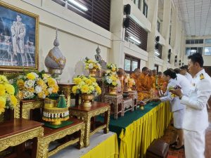 วันที่ 28 กรกฎาคม 2567 เวลา 07.00-09.00 น. พ.ต.อ.จักรียุทธ โชติวชิระพงศ์ ผกก.สภ.บ่อเกลือ พร้อมด้วยแม่บ้านตำรวจ และข้าราชการตำรวจ สภ.บ่อเกลือ ร่วมกิจกรรมกับหัวหน้าส่วนราชการ/รัฐวิสาหกิจ/องค์การปกครองส่วนท้องถิ่น ในพิธีทำบุญตักบาตรถวายพระราชกุศล เฉลิมพระเกียรติพระบาทสมเด็จพระเจ้าอยู่หัว เนื่องในโอกาสวันพระราชพิธีมหามงคลเฉลิมพระชนมพรรษา 6 รอบ 28 กรกฎาคม 2567 ณ ศาลาประชาคมอำเภอบ่อเกลือ ต.บ่อเกลือใต้ อ.บ่อเกลือ จ.น่าน โดยกิจกรรมมี นางพิมลพันธุ์ จันโทภาส นายอำเภอบ่อเกลือ เป็นประธานในพิธี