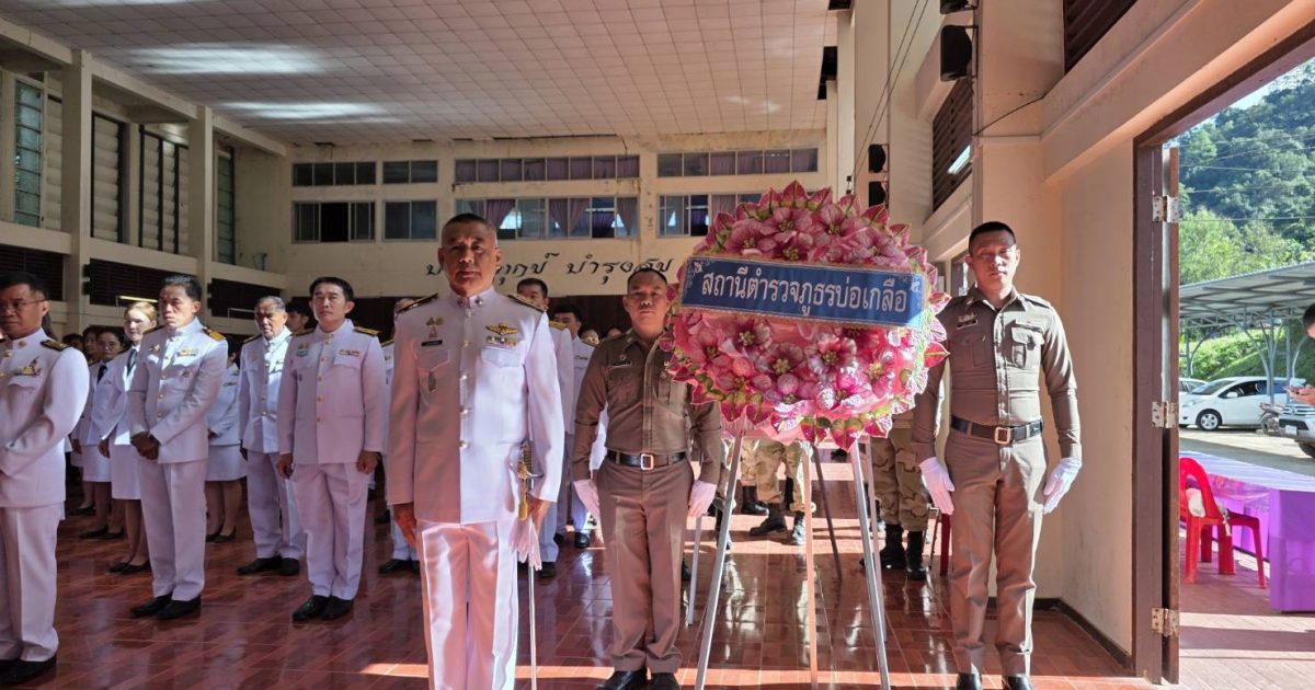วันที่ 23 ตุลาคม 2568 เวลา 08.30 น. พันตำรวจเอก สมชาย สุขทรัพย์ ผู้กำกับการสถานีตำรวจภูธรบ่อเกลือ พร้อมด้วยข้าราชการตำรวจสถานีตำรวจภูธรบ่อเกลือ เข้าร่วมกิจกรรมรัฐพิธีวางพวงมาลาและถวายราชสดุดี เนื่องในวันคล้ายวันสวรรคตพระบาทสมเด็จพระจุลจอมเกล้าเจ้าอยู่หัว“วันปิยมหาราช” 23 ตุลาคม 2568 ณ ศาลาประชาคมอำเภอบ่อเกลือ จังหวัดน่าน โดยมี นายวุฒิพงศ์ แก้วปาเฟือย นายอำเภอบ่อเกลือ เป็นประธานในพิธี