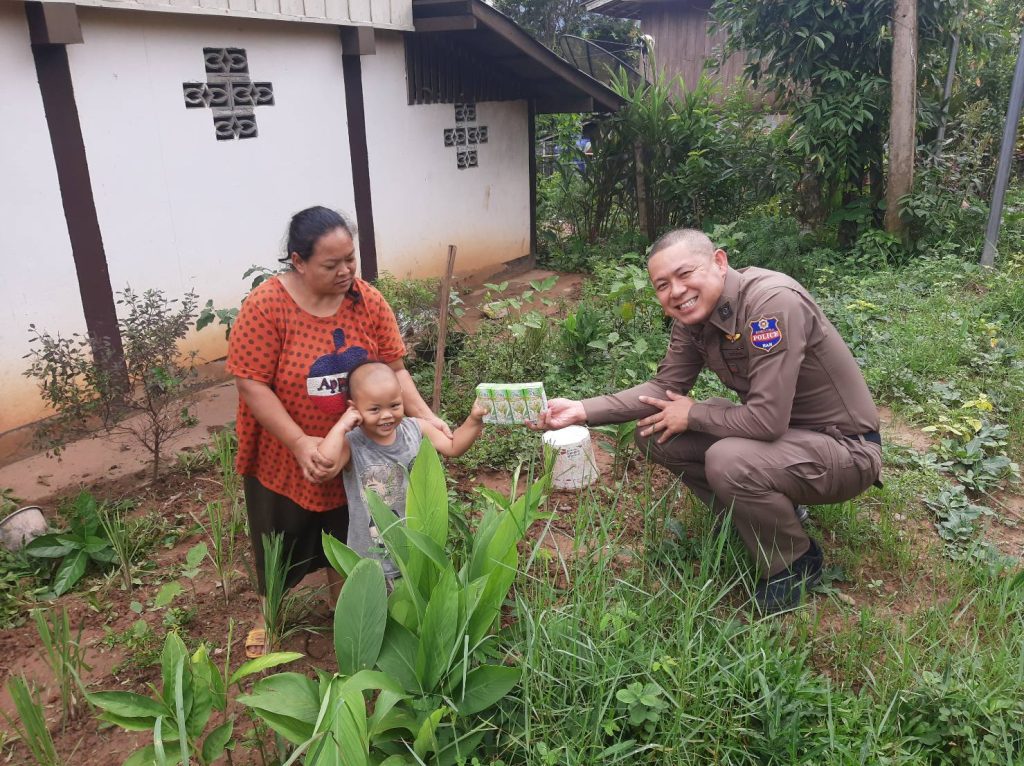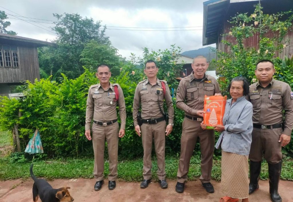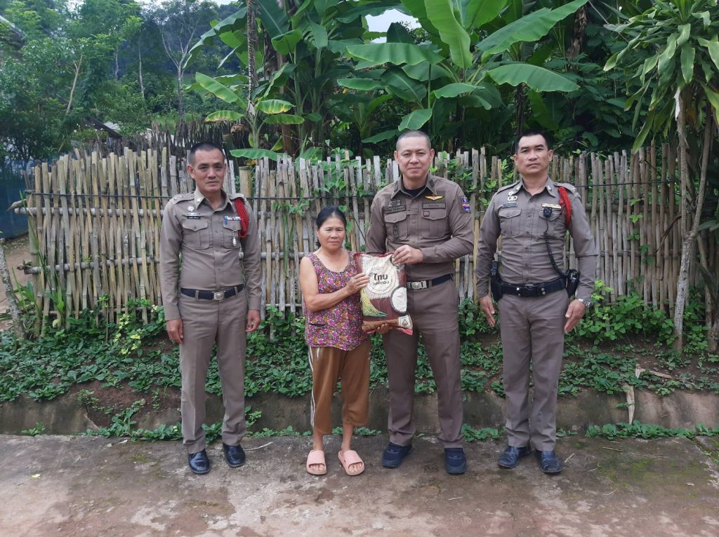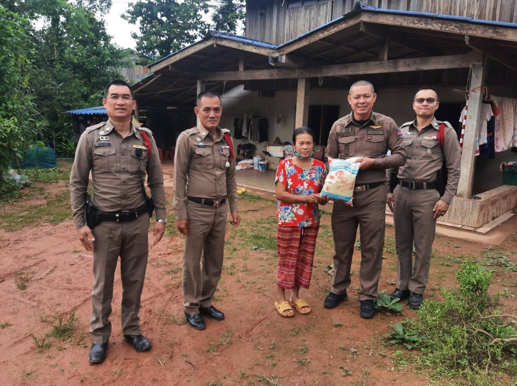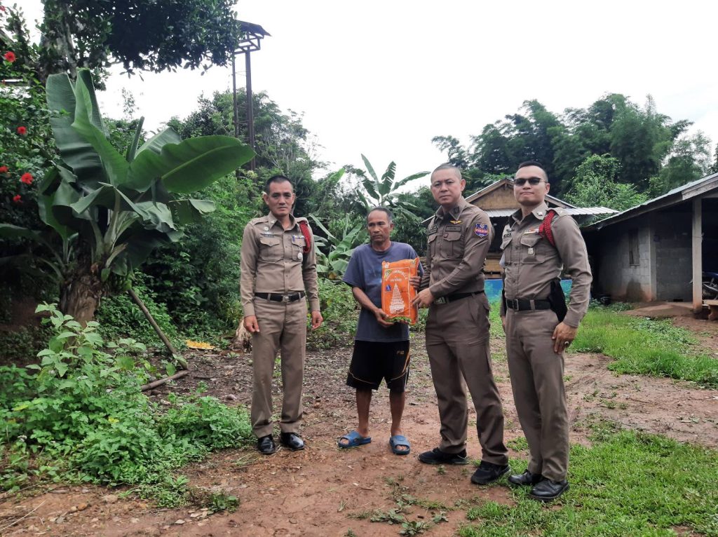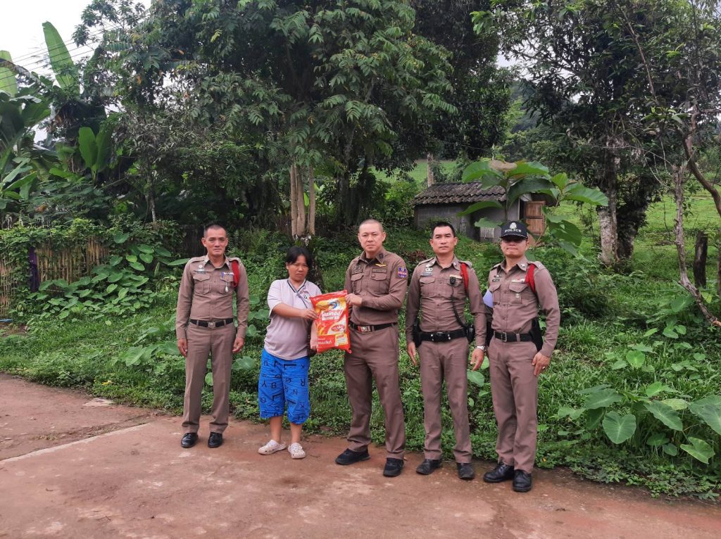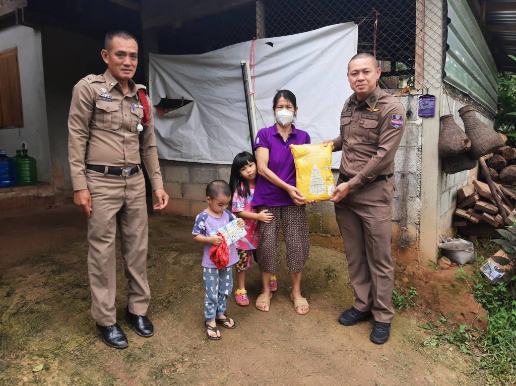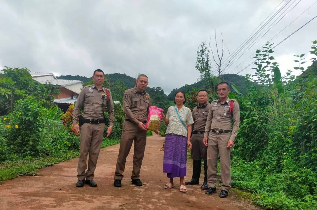 และเจ้าหน้าที่ตำรวจ สภ.บ่อเกลือ ได้เดินทางไปมอบข้าวสาร นมกล่อง