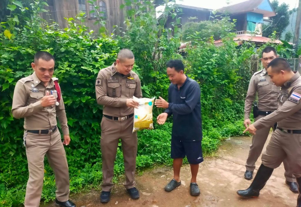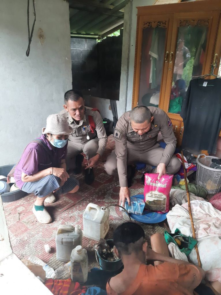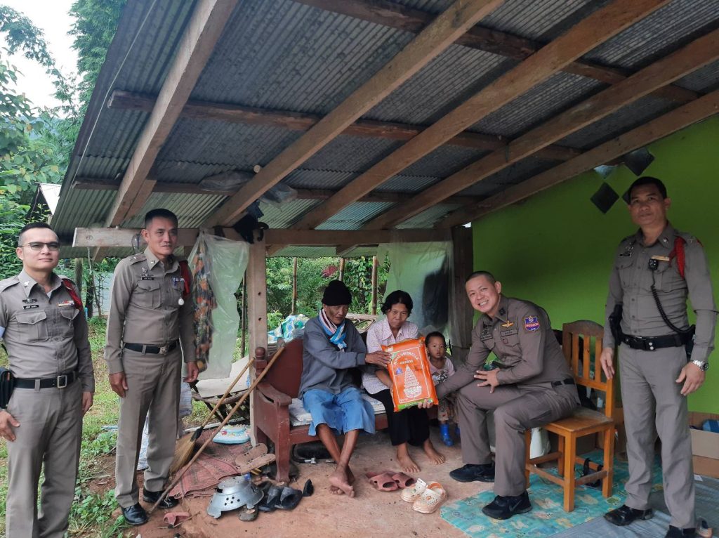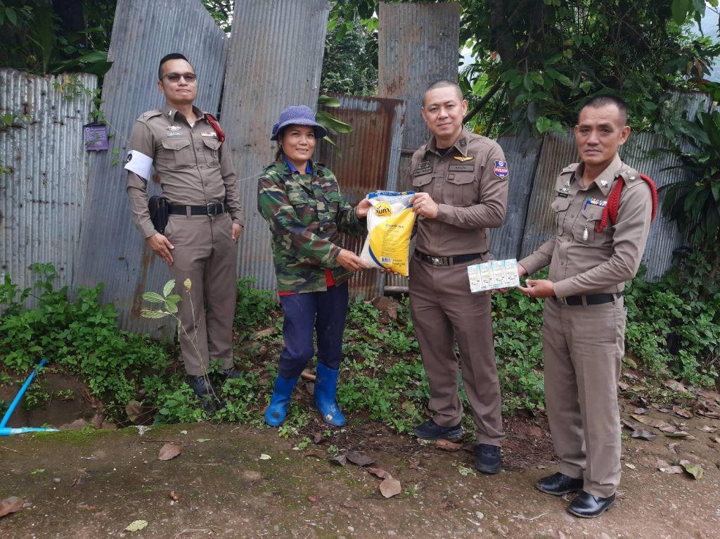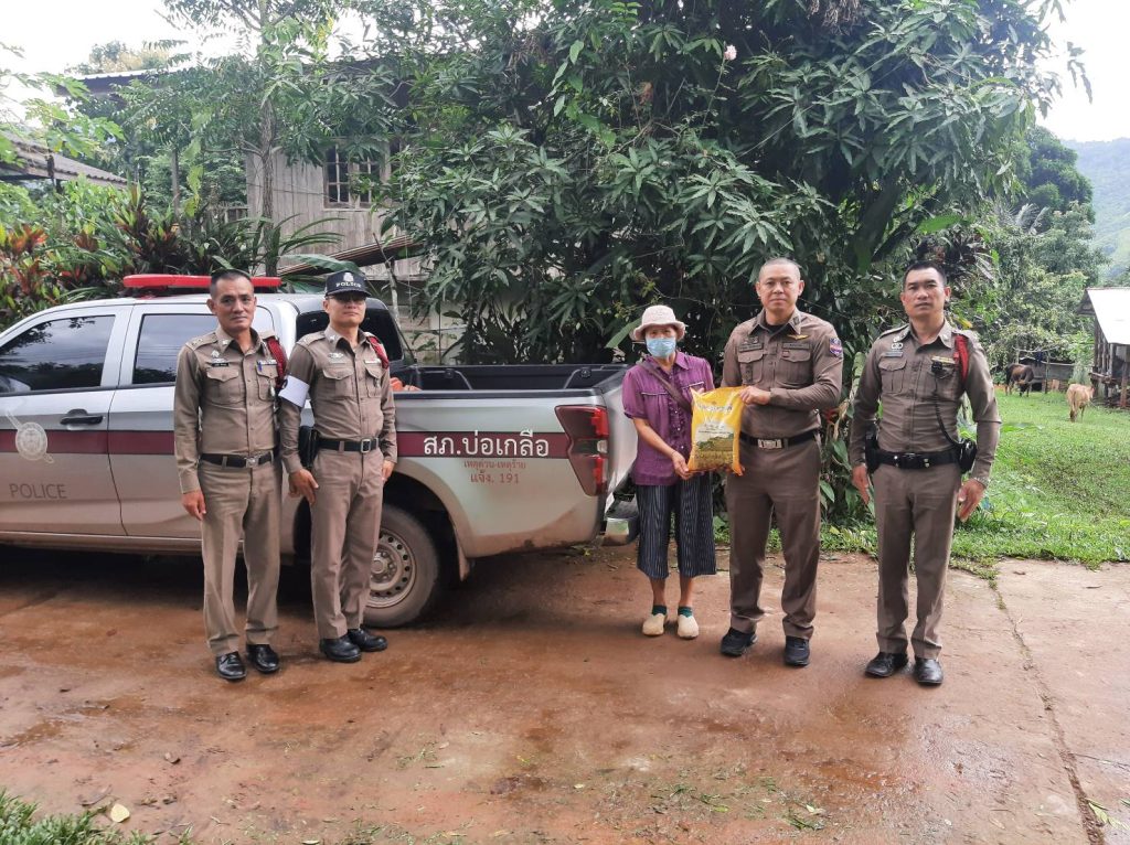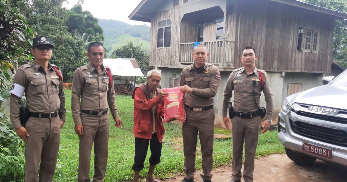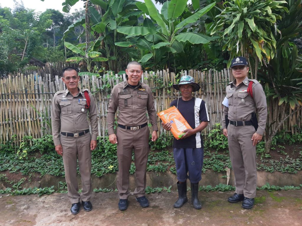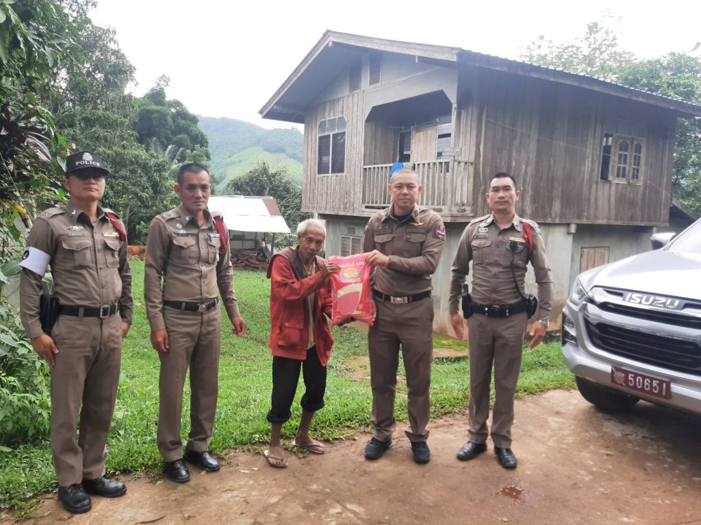 และเจ้าหน้าที่ตำรวจ สภ.บ่อเกลือ ได้เดินทางไปมอบข้าวสาร นมกล่อง