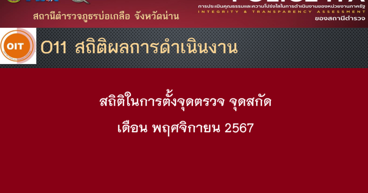 สถิติการตั้งจุดตรวจ เดือน พ.ย.67 4 เมษายน 2568 โดย admin / การตั้งจุดตรวจ จุดสกัด,การตั้งจุดตรวจ จุดสกัด,จุดตรวจเดือน พ.ย.67 ข้อมูลผลการดำเนินงานในเชิงสถิติ การตั้งจุดตรวจ พ.ย.67 FacebookFacebookXXLINELine