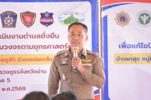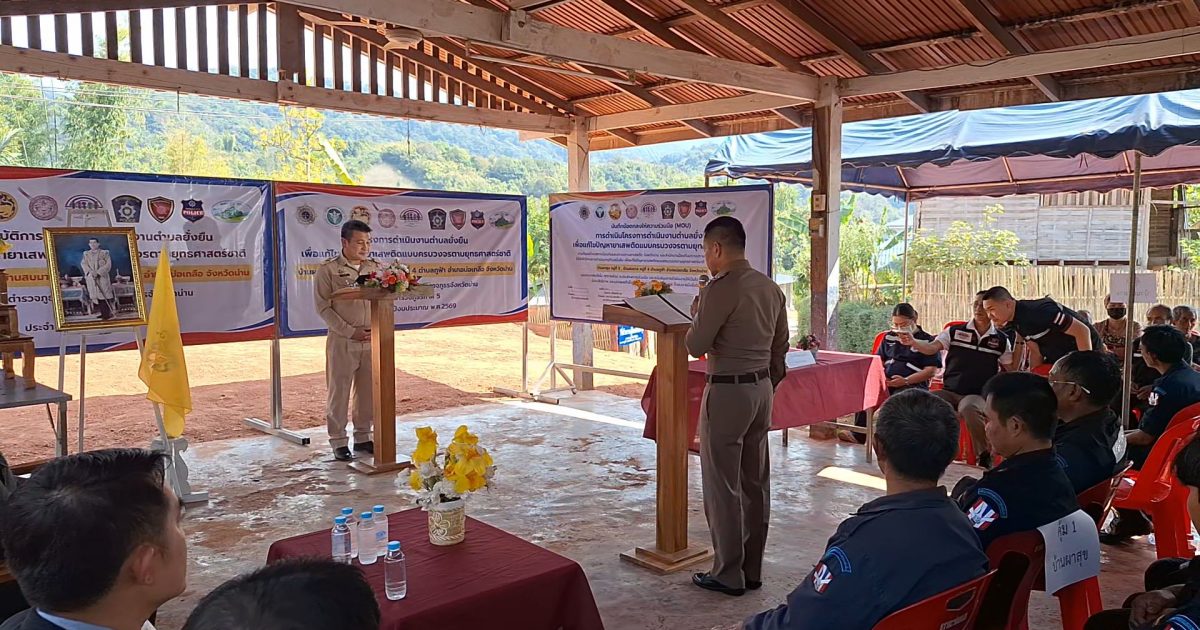 วันที่ 10 กุมภาพันธ์ 2569 เวลา 13.30 น. พ.ต.อ.สมชาย ธิติพลวิภาส ผกก.สภ.บ่อเกลือ , พ.ต.ท.สุทธิศักดิ์ มลิวรรณ รอง.ผกก.ป.สภ.บ่อเกลือ , พ.ต.ท.สมาน กาติ๊บ รอง ผกก.สส.สภ.บ่อเกลือ , พ.ต.ท.ปรีชา ปรารมภ์ สว.อก.สภ.บ่อเกลือ , พ.ต.ต.เทวฤทธิ์ วานิชพันธ์ สวป.สภ.บ่อเกลือ พร้อมชุดตำบลยั่งยืนฯ สภ.บ่อเกลือ ร่วมกับหัวหน้าส่วนราชการอำเภอบ่อเกลือ ได้จัดพิธีเปิดโครงการดำเนินงานตำบลยั่งยืน เพื่อแก้ไขปัญหายาเสพติดแบบครบวงจรตามยุทธศาสตร์ชาติ ประจำปีงบประมาณ พ.ศ.2569 ณ บ้านผาสุข หมู่ที่ 3 , บ้านสบมาง หมู่ที่ 4 ต.ภูฟ้า อ.บ่อเกลือ จว.น่าน ณ หอประชุมบ้านผาสุข ต.ภูฟ้า อ.บ่อเกลือ จ.น่าน โดยมี นายวัชรา คำสูง ปลัดอำเภอหัวหน้ากลุ่มงานทะเบียนอำเภอบ่อเกลือ เป็นประธานในพิธี พร้อมด้วยส่วนราชการที่เกี่ยวข้อง ผู้นำชุมชน คณะกรรมการหมู่บ้าน ตลอดจนประชาชนในพื้นที่ เข้าร่วมพิธีเปิดโครงการฯโดยพร้อมเพรียง ในการนี้ได้มีพิธีลงนาม MOU บันทึกข้อตกลงกับส่วนราชการ และพิธีการลงนาม MOU ครัวเรือน กับทุกครัวเรือนที่เข้าร่วมโครงการฯ ไว้เป็นที่เรียบร้อย