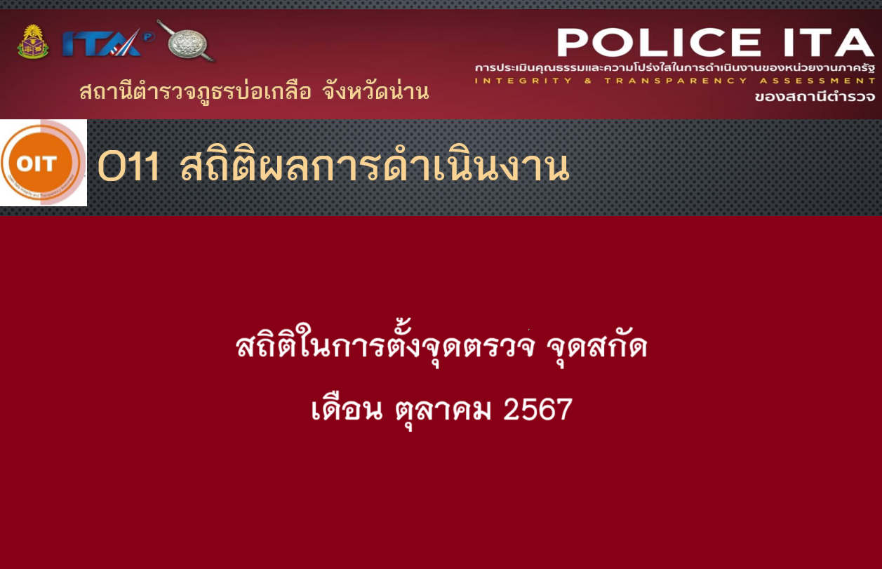 สถิติในการตั้งจุดตรวจ จุดสกัด เดือน ตุลาคม 2567