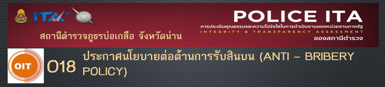 ประกาศนโยบายต่อต้านการรับสินบนของสถานีตำรวจภูธรบ่อเกลือ จังหวัดน่าน