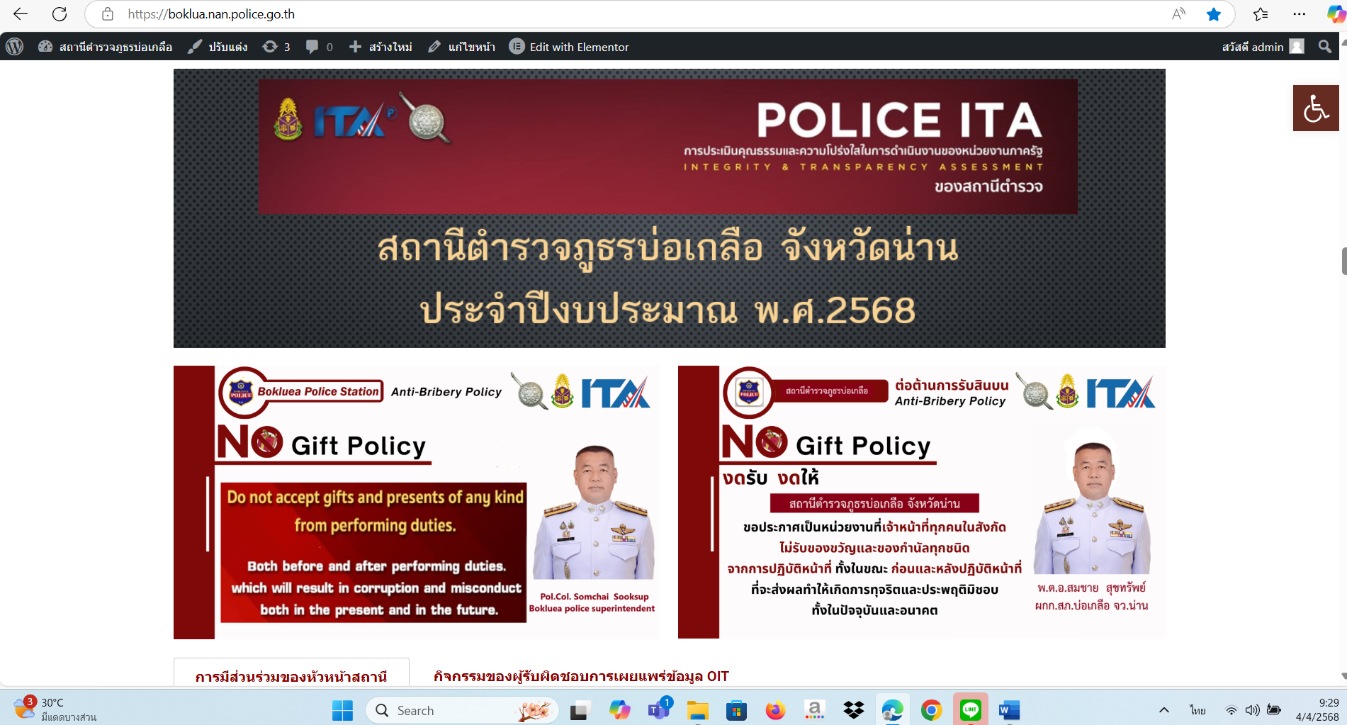 แสดงประกาศนโยบาย บนหน้าแรกของเว็บไซต์ ของ สภ.บ่อเกลือ จว.น่าน