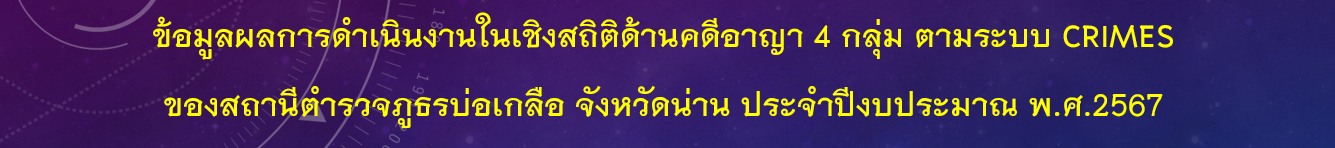 สถิติคดีอาญา 4 กลุ่มตามระบบ CRIMES เดือน กุมภาพันธ์ 2567